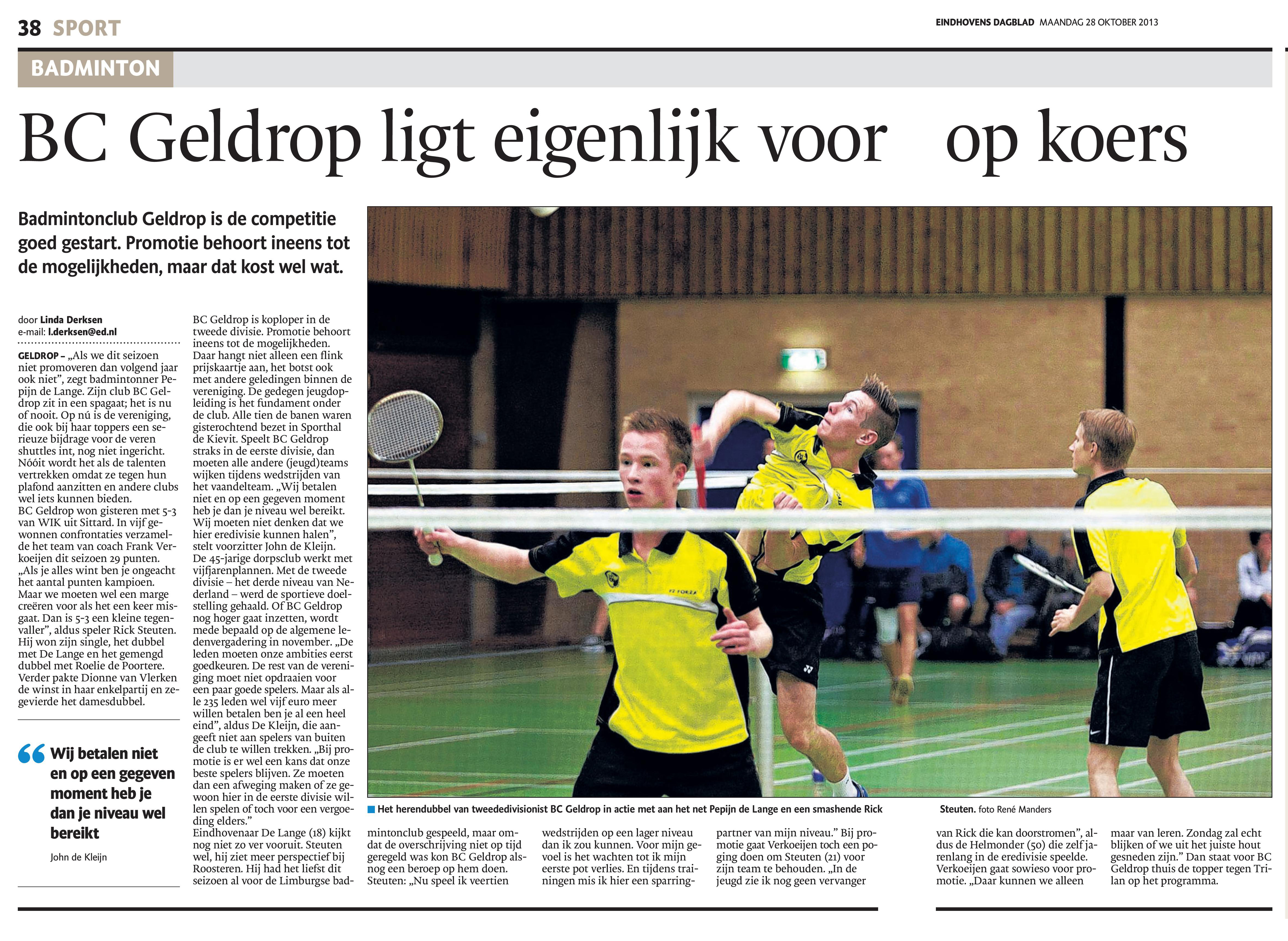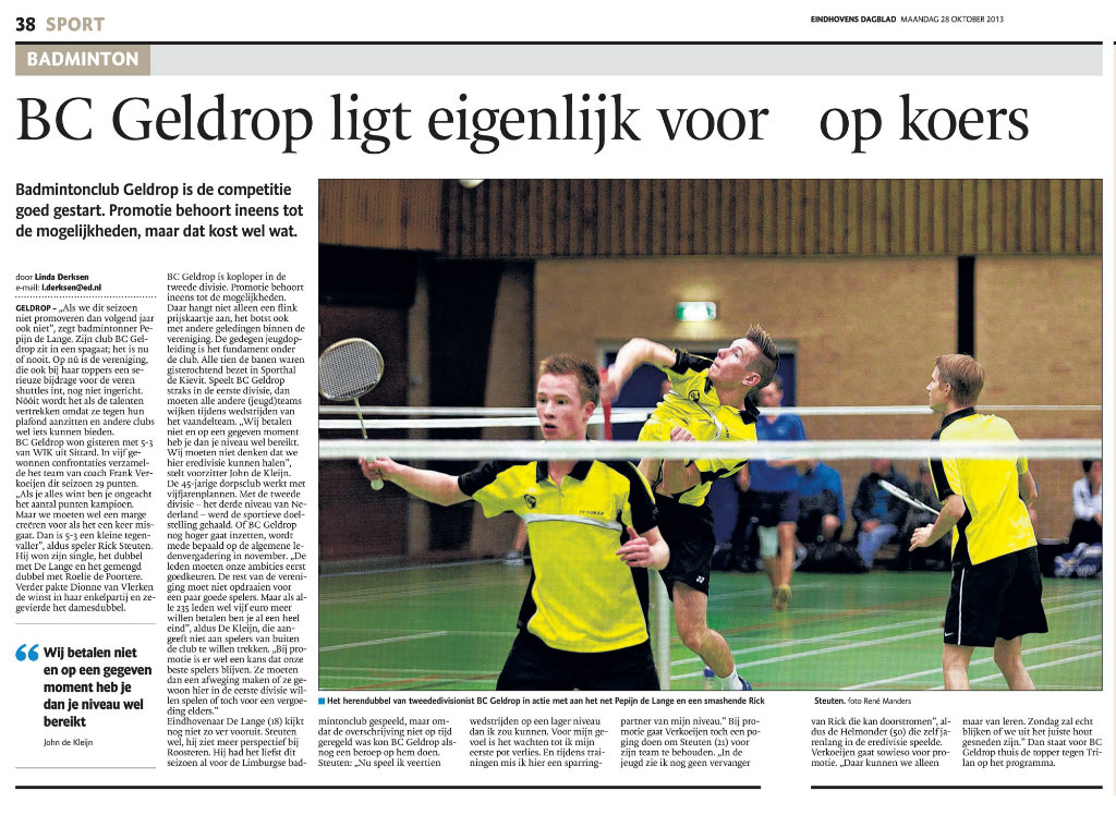 De intentie van het ED is om vaker aandacht te besteden aan onze vereniging. Hier het artikel dat op 28 oktober verscheen.