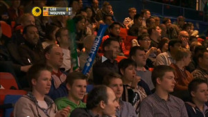 De volgende dag moesten we vroeg op, want om tien uur stonden de halve finales gepland. We probeerden nog even om tussen de Deense supporters te gaan zitten, maar we bleken op plekken van andere mensen te zitten. Toen zijn we maar weer op de (waarschijnlijk voor ons) Reserved Seats gaan zitten, van waaruit we een perfect zicht hadden op de twee banen waarop gespeeld werd.