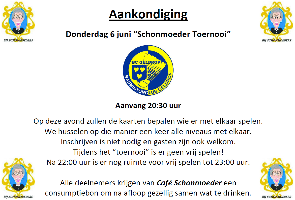 Donderdag 6 juni “Schonmoeder Toernooi”