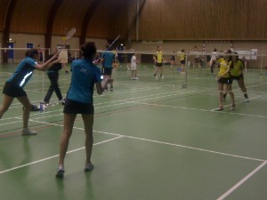 Tegelijkertijd werd er op de andere baan de damesdubbel gespeeld. Ook deze wedstrijd mocht Geldrop naar zich toe trekken, Kim en olga wisten te winnen met 21-15 en 21-14.