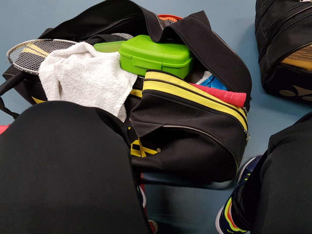 Dit is de tas van Maarit. Zonder tas geen rackets en schoenen, en zonder rackets en schoenen geen wedstrijd. Had vandaag toch 2 kostbare punten gescheeld. Bovendien moest er even getest worden of de camera geen flits gaf. Dit was het geval. We waren er klaar voor!