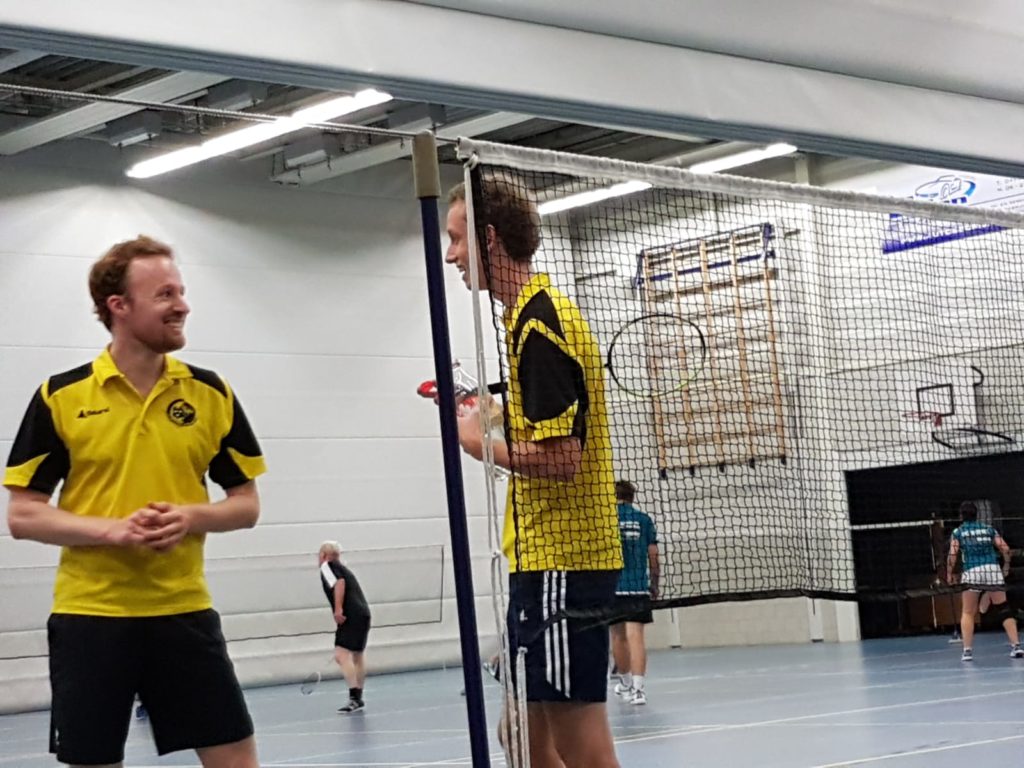 De mix van Jim en Marjolein kunnen we samenvatten als ‘nee, het was het niet’. De mix van Koen en Maarit was er eentje om nooit meer te vergeten. De eerste set werd dik verloren. De tweede set gingen zij anders spelen, communiceerden veel en wisten op wonderbaarlijke wijze in de verlening de set binnen te halen. De 3e set kwamen zij vrij rap op een 18-0 achterstand (nee, helaas is dit geen typefout). Waar Jim eerder nog zeer waardevolle coaching wist te geven moesten Koen en Maarit het nu doen met ‘ja, terugslaan werkt blijkbaar niet’. Maar Koen en Maarit zijn voor geen gat te vangen en wisten toch nog 5 punten te scoren, waardoor de laatste 8 punten gewoon met 5-3 naar Geldrop zijn gegaan.