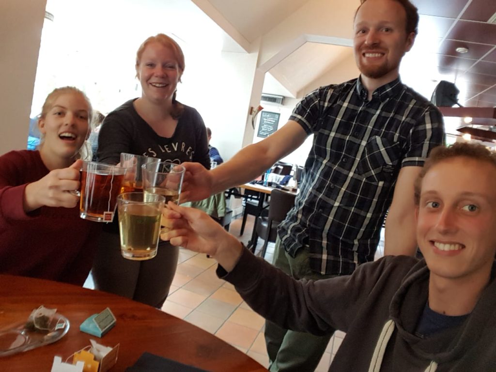 Na de wedstrijd was het namelijk tijd voor het ALLEREERSTE TEAMUITJE!! Yeah, weken keken we er naar uit, we hadden er zin in. Omdat Jim zijn geheugen nog had ‘geholidelete’ op vakantie, was het feest bijna niet doorgegaan, maar gelukkig hebben we reminders. Wij gingen lekker high tea’en, want wedstrijd of niet; chocola en thee gaan er altijd in.