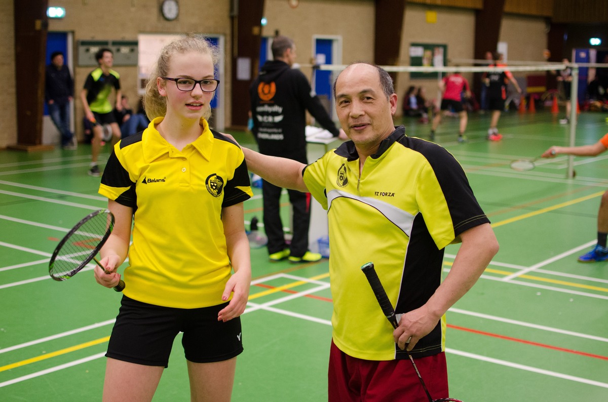 Op zaterdag begonnen de wedstrijden om 9:00 uur. De allereerste wedstrijd van onze Belgische vriend Kevin van den Broecke tegen Ralph Brouwer van BC Alouette stond model voor een groot deel van de wedstrijden; veel inzet, veel strijd en vooral veel gespeelde punten. We hadden de wedstrijden wat korter verwacht en liepen daardoor op de eerste dag steeds wat verder achter op schema. Uiteindelijk hebben we dit op kunnen lossen door een aantal wedstrijden naar zondag te verplaatsen en verder ging iedereen er wel relaxed mee om. En de splers hadden altijd de keuze om even te ontspannen in de kantine. Kees had gezorgd voor een aantal warme maaltijden; je kon een keuze maken uit nasi met saté, friet met stoofvlees en spaghetti bolognese. Je kon ook wat onderdelen combineren tot een nieuw gerecht bleek uit de borden van de gezusters Blok.