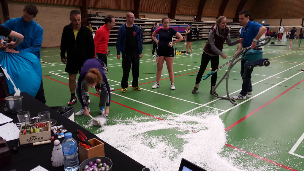 De zaterdag was een lange dag, want pas om 22:15 uur gingen de laatste spelers de baan op en na bijna 14 uur non-stop badminton kwam er een einde aan dag 1. Op zondag werd er iets later begonnen en als eerste werden de resterende poulewedstrijden gespeeld. Gaandeweg de dag werd duidelijk wie er door zouden gaan richting de afvalschema’s die ’s middags op het programma stonden. Het doorgaan van veel dezelfde spelers zorgde nog wel voor wat zweetdruppeltjes bij de organisatie, maar uiteindelijk zijn alle wedstrijden keurig volgens schema afgewerkt.