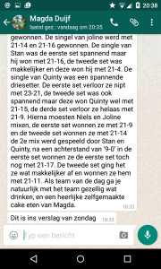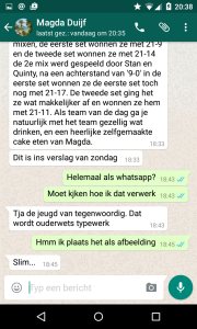 Eerst was daar Team U17-3 dat een videoverslag maakte van hun wedstrijd (“Hulde!”), deze week doet Team U19 daar nog een schepje bovenop met een verslag via WhatsApp. Wat ik daarvan vind? G-E-N-I-A-A-L! Maar ik ben benieuwd welke verrassing mij de komende week te wachten staat?